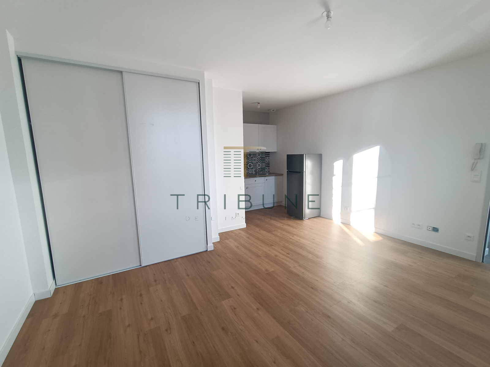 Au premier étage, ce coquet appartement vous propose une lumineuse pièce de vie avec son coin kitchenette aménagé et semi - équipé (meubles de rangement, plaque vitrocéramique deux feux, hotte, réfrigérateur) et un grand placard aménagé.