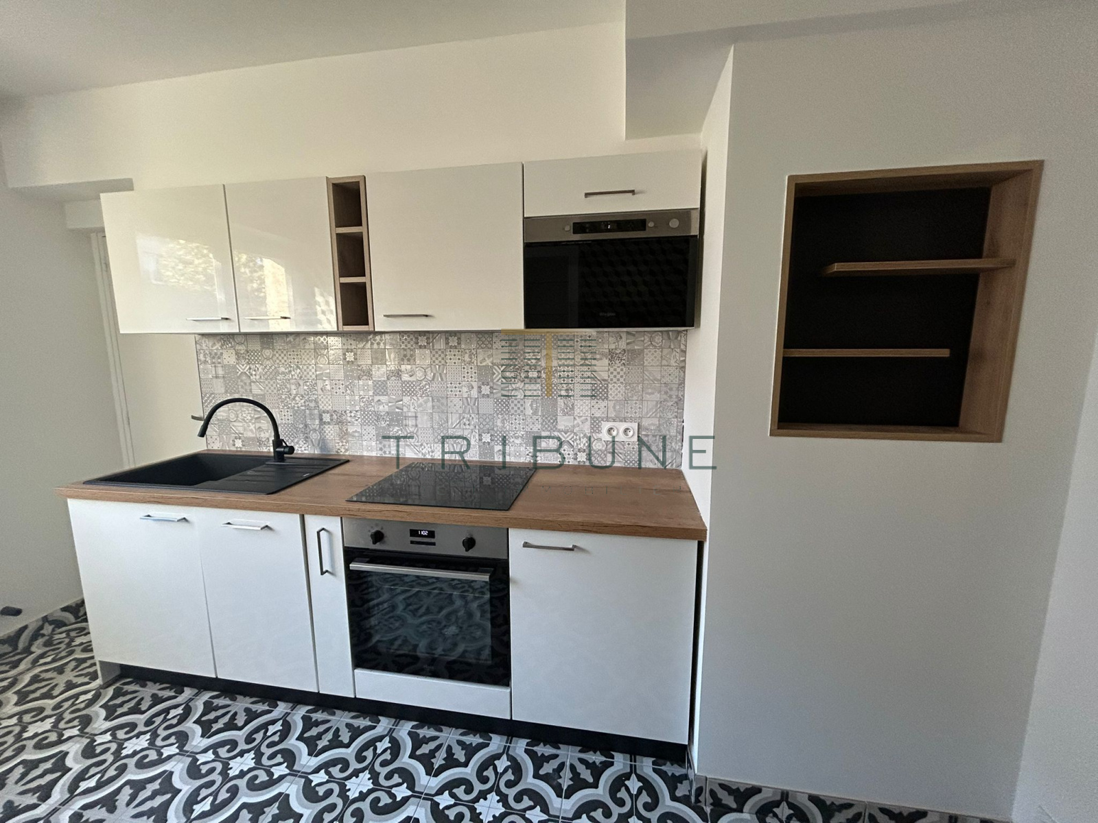 Le logement se décompose comme suit : vous arrivez dans une entrée équipée d'un placard de rangement qui vous permet d'accéder sur votre gauche à la pièce de vie et sur votre droite à la cuisine, aménagée et équipée (plaque induction, four, hotte, micro - ondes, lave-vaisselle). Attenant à celle-ci, un petit espace buanderie.