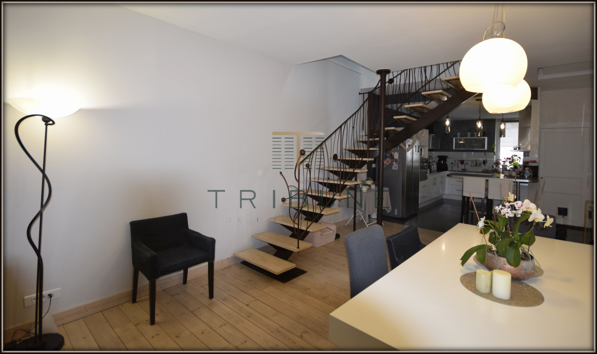 En plein coeur de ville, et dans une rue très calme, superbe maison de ville avec une pièce de vie de 70 m², lumineuse et équipée d'un poele à granules, cuisine ouverte, buanderie, et wc séparés.
