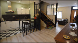 - Au rdc : une vaste pièce de vie avec cuisine ouverte toute équipée, un buanderie, un wc.