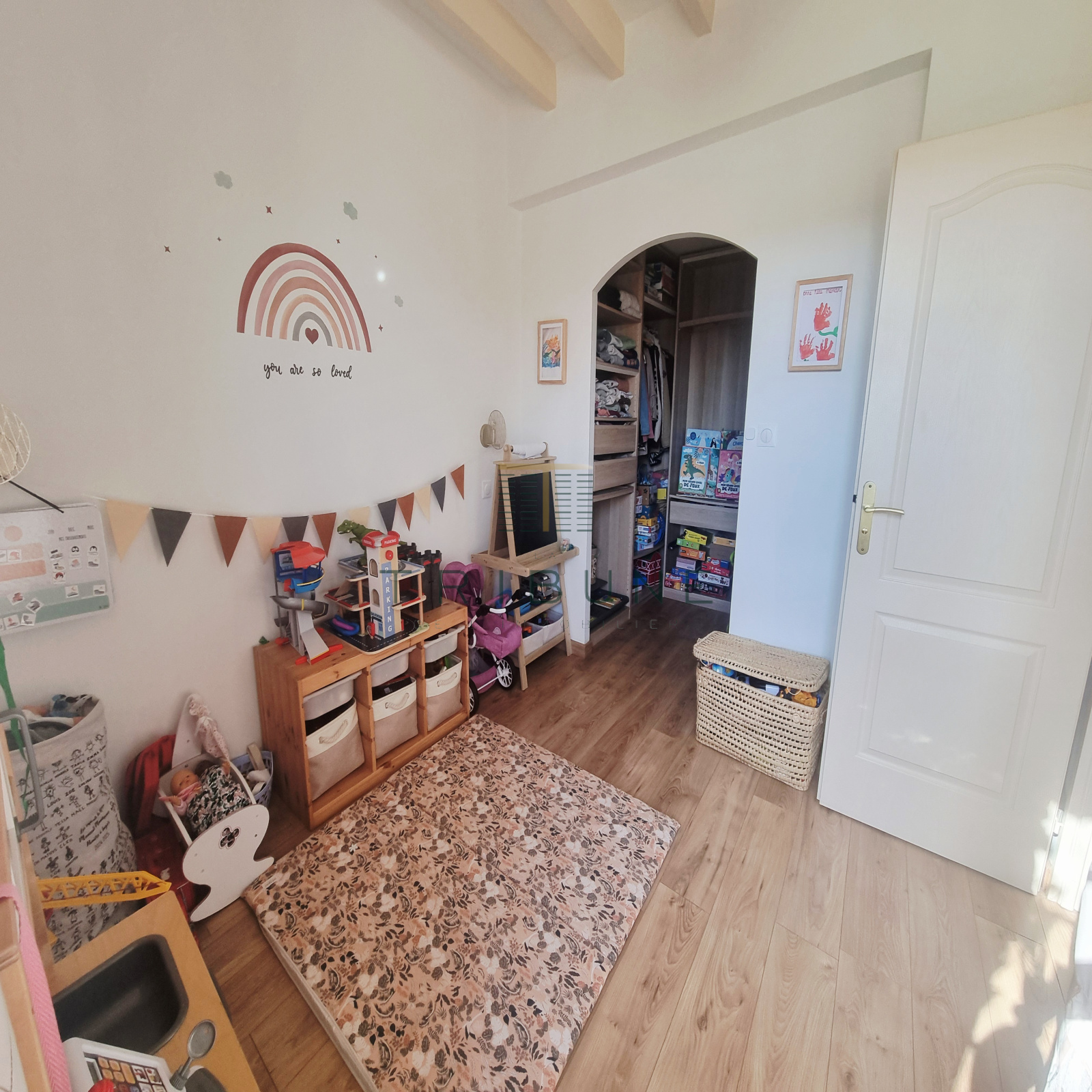 Le rez de chaussée propose également une buanderie indépendante. Une chambre avec son dressing offre un espace nuit pratique et intime. Une salle de bains ainsi qu’un wc séparé complètent ce niveau pour un confort optimal.