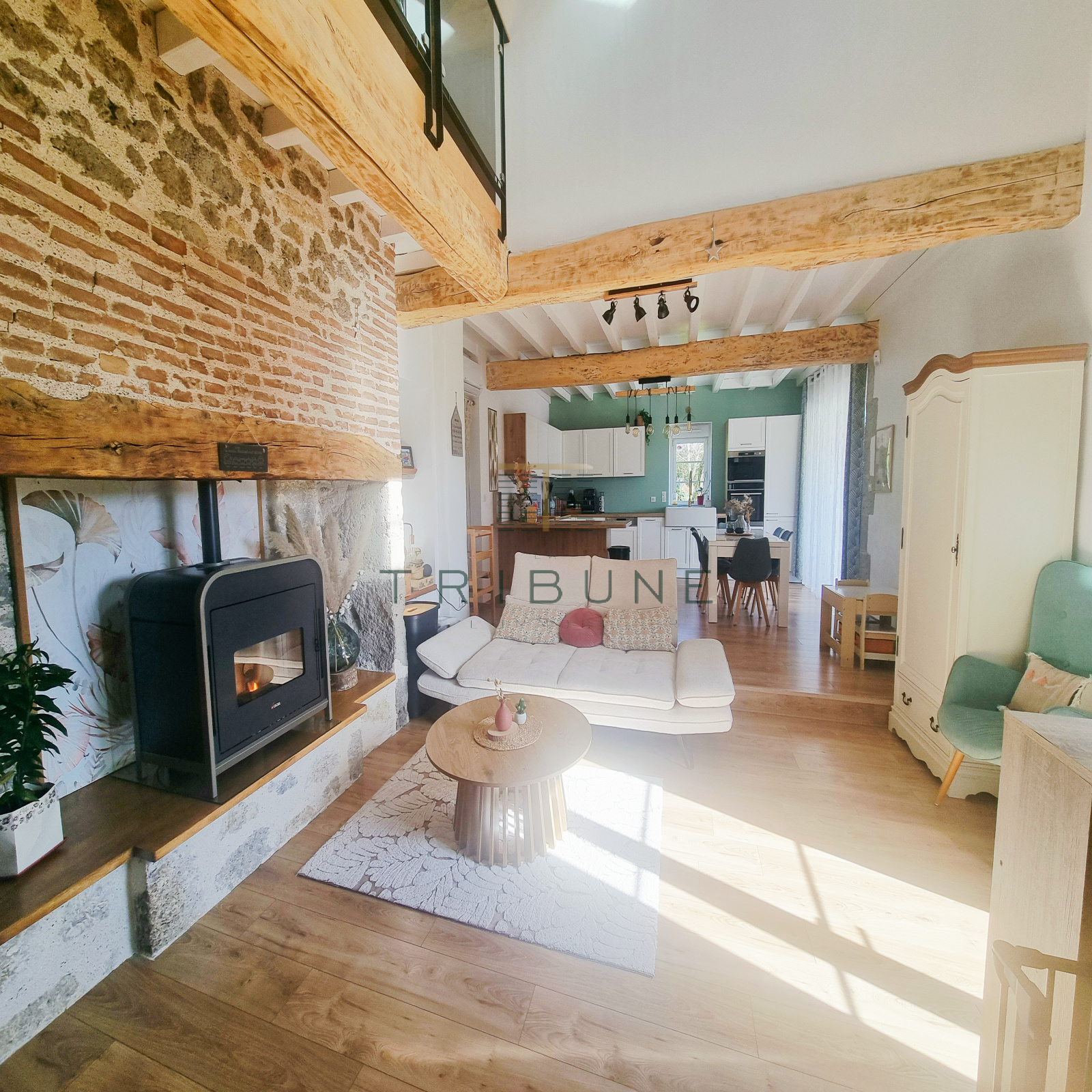 Dès l’entrée, vous êtes séduit par la hauteur sous plafond qui apporte une sensation d’espace et de luminosité. La pièce de vie est chaleureuse et élégante. Le poêle à granules crée une ambiance conviviale en toute saison. La cuisine ouverte, moderne et fonctionnelle, prolonge naturellement l’espace et invite au partage.