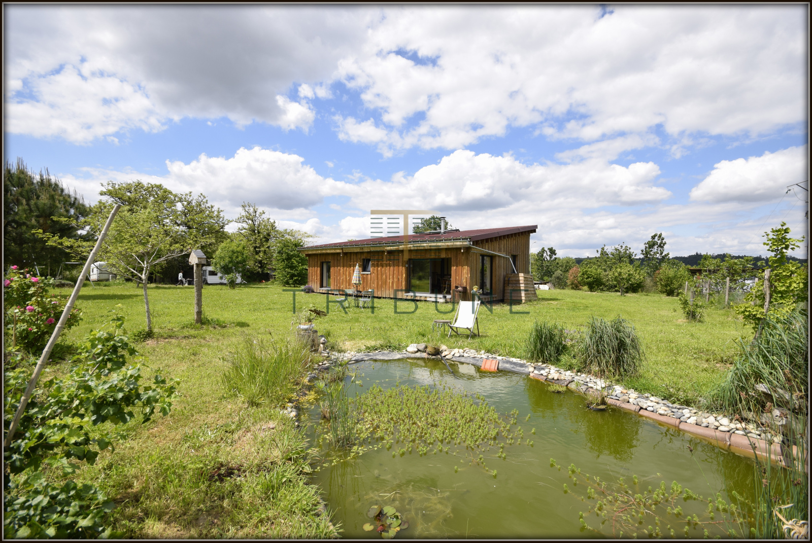 Maison éco-construite, comprenant une grande pièce à vivre baignée de lumière, cuisine ouverte, 3 chambres, une salle d'eau + wc.