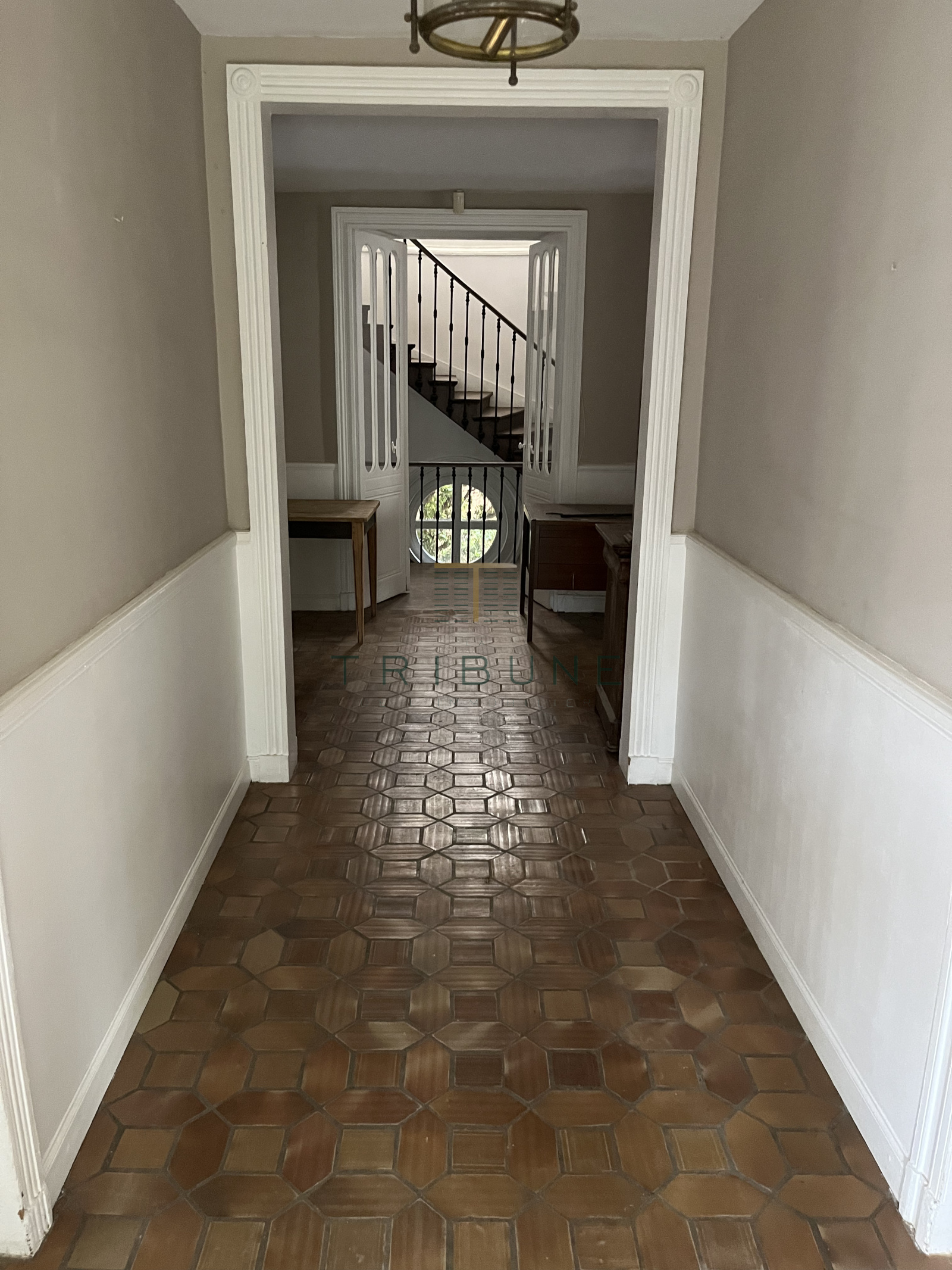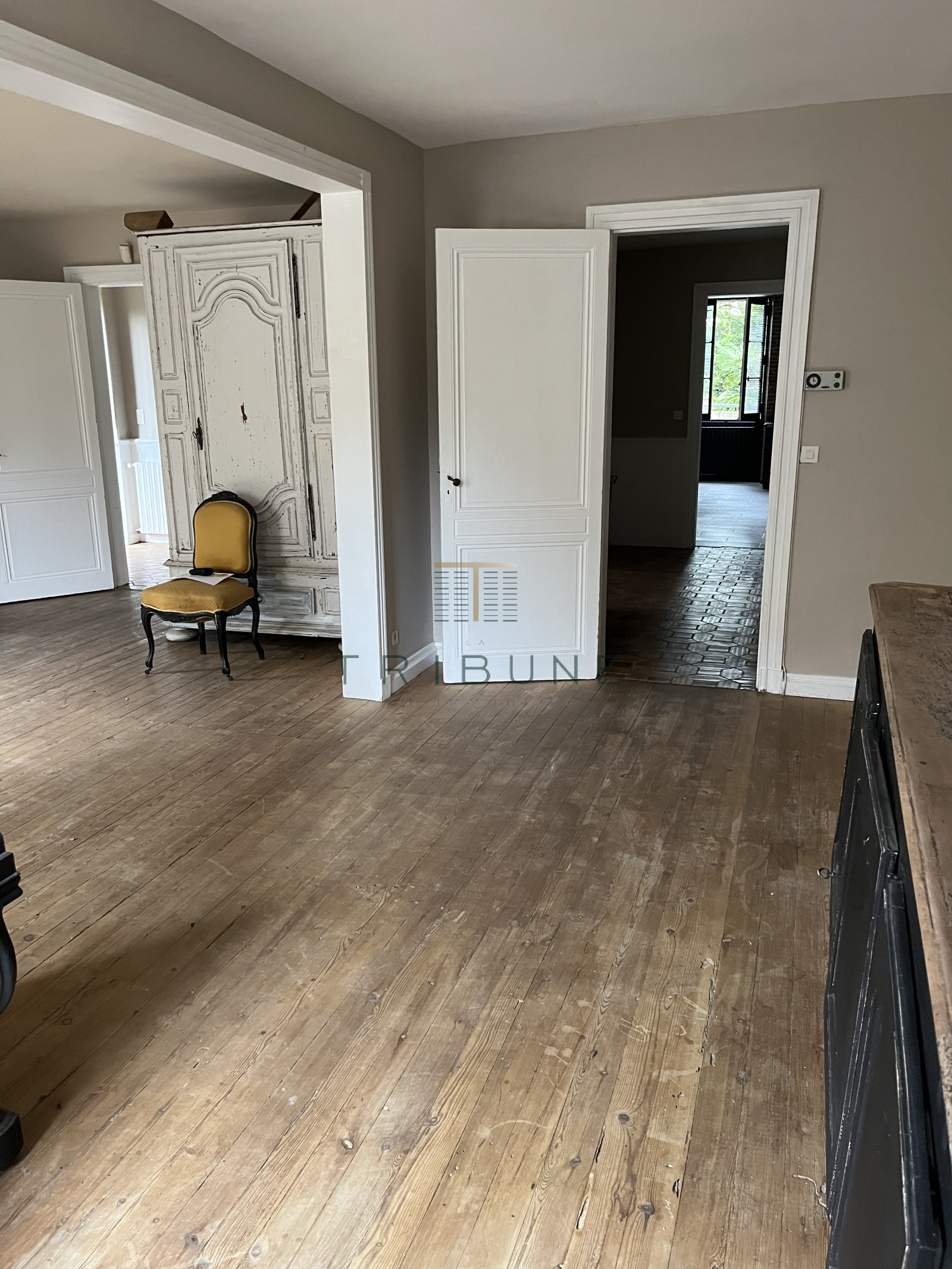 En rez-de-chaussée, elle est composée d'une grande pièce de vie de 42m2, d'une salon de 27m2, d'une cuisine indépendante de 15m2, et d'une grande entrée, pour un niveau d'une superficie totale d'environ 110m2 .