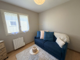 L’intérieur se compose d’une pièce de vie lumineuse, d’une cuisine indépendante, de deux chambres, d’une salle de bains et de WC séparés, offrant un agencement pratique pour le quotidien.