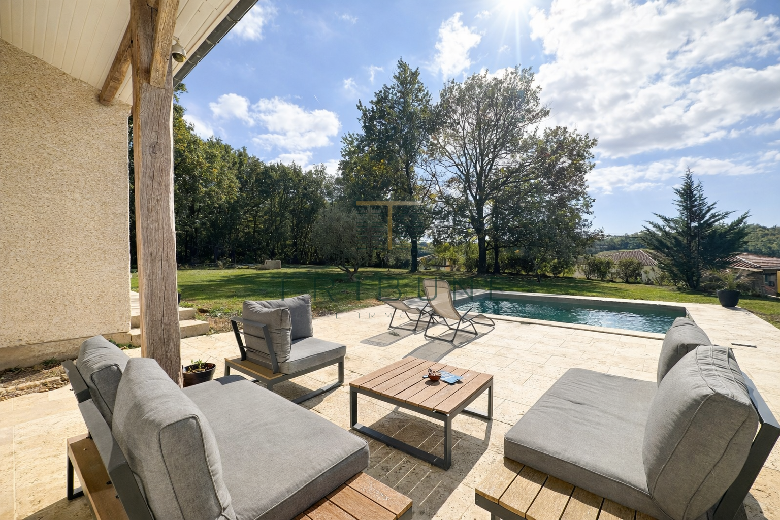 MAISON RÉCENTE AVEC PISCINE – 3 CHAMBRES + BUREAU – TERRAIN CLOS – SAINTE-COLOMBE-EN-BRUILHOIS