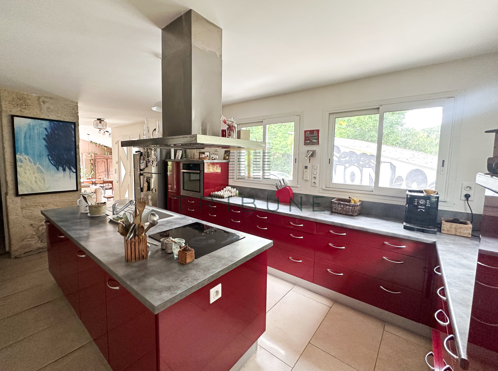 La bâtisse principale, en pierre, date du début du XIXe siècle et conserve tout le charme de l’ancien : murs épais, cachet authentique, atmosphère sereine.Une extension récente de 60 m² vient compléter l’ensemble avec harmonie, apportant lumière et confort moderne. Les volumes intérieurs sont généreux, baignés de lumière naturelle. Le salon spacieux s’ouvre largement sur l’extérieur, la cuisine est fonctionnelle et les quatre chambres permettent d’accueillir famille, invités ou espace de travail selon les besoins.