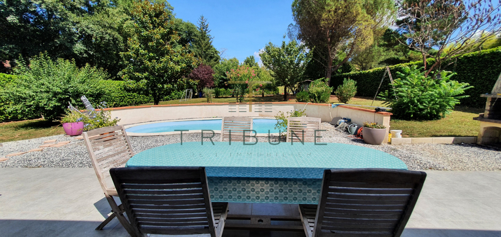 - Le tout sur un jardin arboré de 1 800 m², avec piscine, pour profiter pleinement des beaux jours