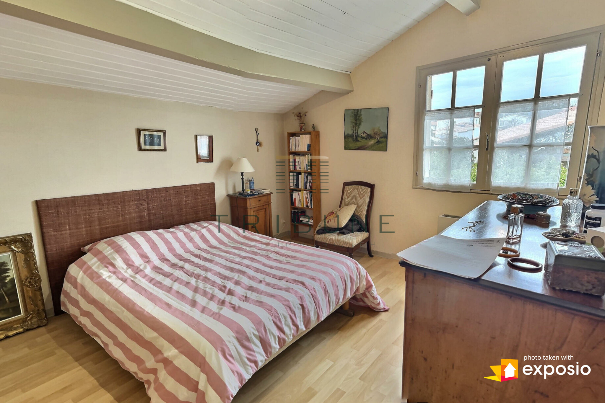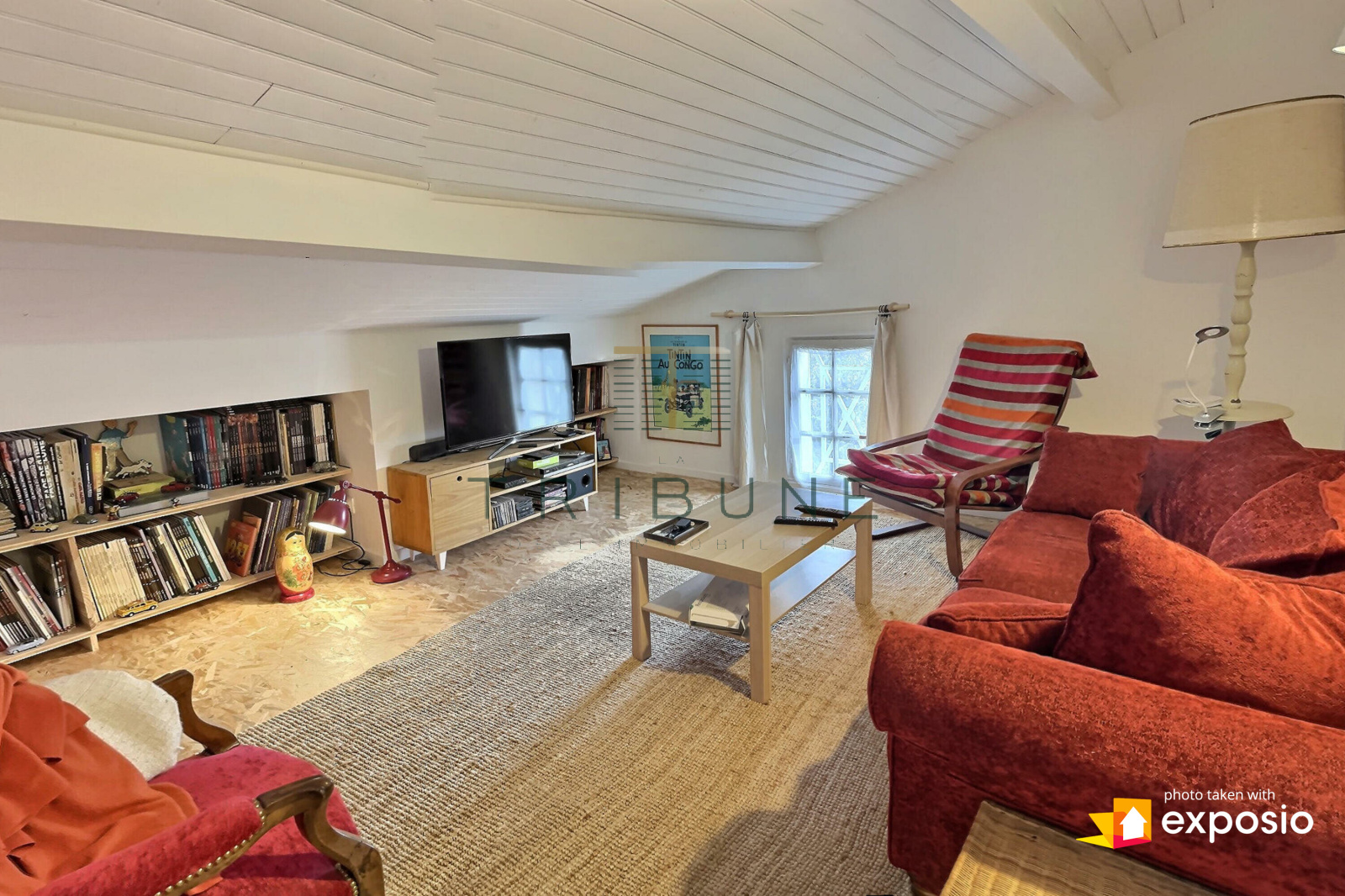 A l'étage, vous bénéficiez d'une salle télé cosy, deux grandes chambres et une salle d'eau. Une pièce sous les combles complète l'étage pour le rangement.